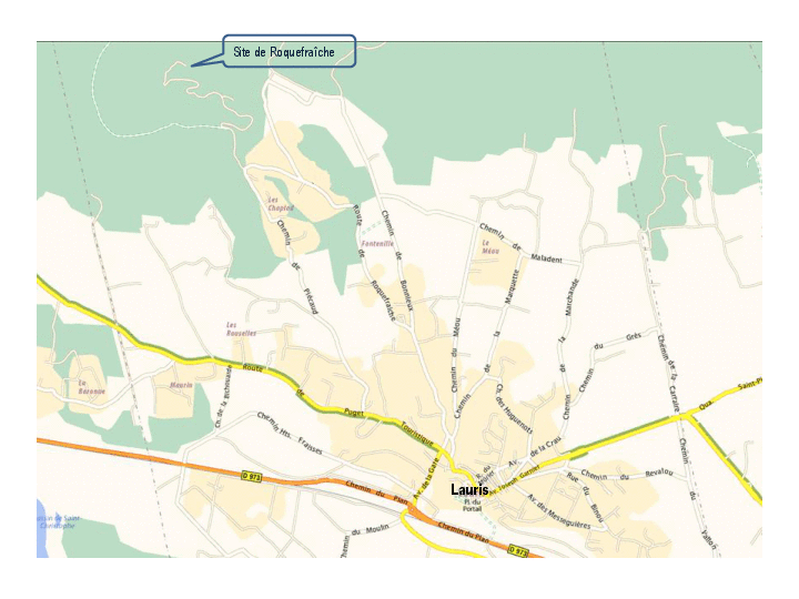 L'accès au site de Roquefraîche à Lauris, se fait exclusivement en voiture, par la D 973, entre Cavaillon et Pertuis.